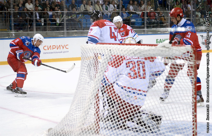 В свой день рождения 7 октября президент России Владимир Путин торжественно открыл пятый юбилейный сезон Ночной хоккейной лиги, выйдя в составе команды "Звезды НХЛ" на лед арены "Шайба" в городе Сочи. Вместе с главой государства в команде играли хоккеисты Вячеслав Фетисов, Алексей Касатонов, Павел Буре, Валерий Каменский, Александр Могильный, Алексей Жамнов, Александр Якушев и Сергей Макаров, а также министр обороны Сергей Шойгу. Команда президента победила соперников - сборную НХЛ - со счетом 15:10. Владимир Путин забросил в ворота противников семь шайб.