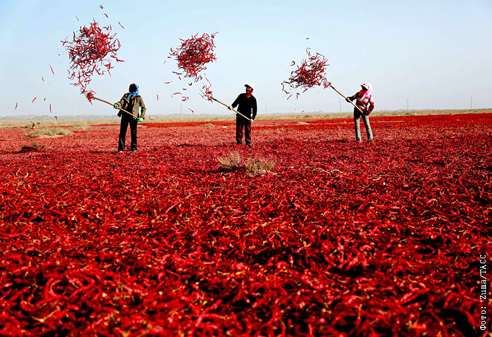 Сбор урожая перца чили в Китае
