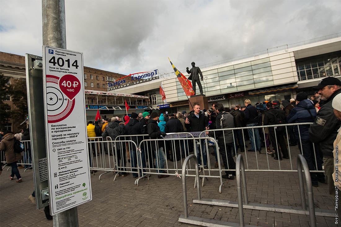 Противники действий столичных властей по созданию новых платных парковок собрались возле памятника Эрнсту Тельману около станции метро "Аэропорт"