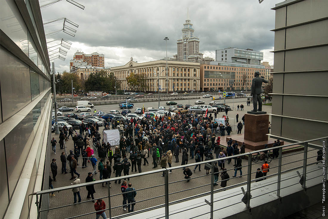 Противники действий столичных властей по созданию новых платных парковок собрались возле памятника Эрнсту Тельману около станции метро "Аэропорт"