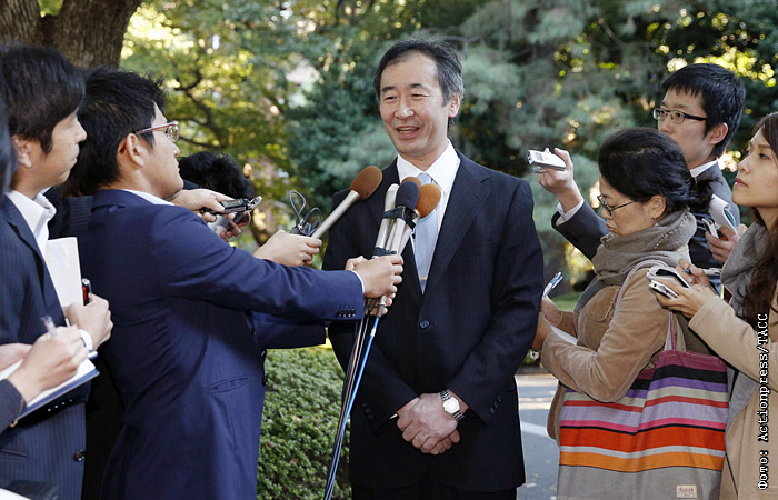 Нобелевскую премию в области физики получили Такааки Кадзита (на фото) из университета Токио и Артур МакДональд из канадского университета Куинс за открытие нейтринных осцилляций, доказывающих, что у этих частиц есть масса. Открытие было сделано на двух детекторах — Супер-камиоканде (Япония) и нейтринной обсерватории в Садбери (Канада). На первом из них физики под руководством Кадзита получили экспериментальное подтверждение того факта, что нейтрино, рождающиеся в атмосфере, меняют свой флейвор между двумя типами.
