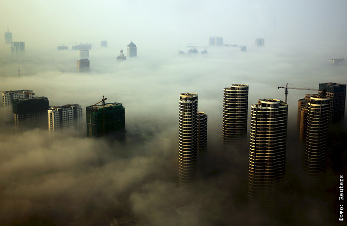 Туман над китайским городом Жичжао