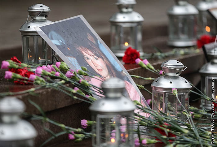 На фото: Акция памяти, посвященной 13-й годовщине трагических событий в Театральном центре на Дубровке.
