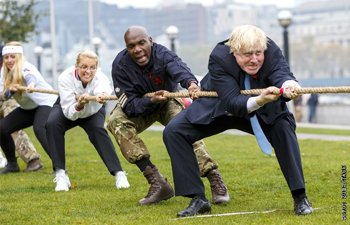 Мэр Лондона Борис Джонсон (на фото справа) снова подтвердил свой неофициальный титул одного из самых экстравагантных политиков Великобритании. На этот раз градоначальник принял участие в соревновании по перетягиванию каната в рамках благотворительной акции в честь предстоящего Дня перемирия.
