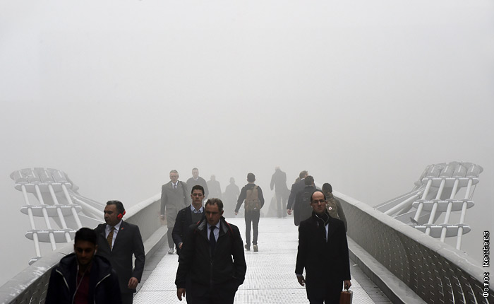 Пешеходный мост Миллениум через Темзу. Из-за густого тумана в Великобритании второй день задерживаются и отменяются авиарейсы.