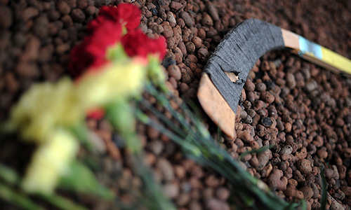 Цветы у посольства Чехии в память о хоккеистах "Локомотива", погибших в катастрофе самолета Як-42 под Ярославлем.