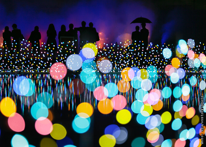 Световое оформление в парке развлечений в Токио