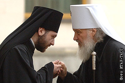 Митрополит Смоленский и Калининградский Кирилл перед началом заседания Священного Синода русской православной церкви в Патриаршей Синодальной резиденции в Свято-Даниловом монастыре