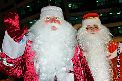 Участники Второго съезда Дедов Морозов и Снегурочек на центральной площади города