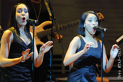 Во время выступления госпел-хора "Harlem Golden Gospel Singers" на концерте "Рождественский бал-2008" в Московском международном доме музыки (ММДМ)