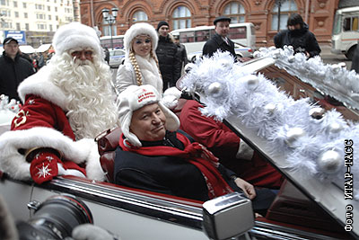 Мэр столицы Юрий Лужков во время встречи Деда Мороза и Снегурочки