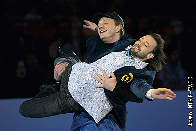 Фигурист Илья Авербух и актер Марат Башаров во время выступления на финальном гала-концерте телевизионного шоу "Ледниковый Период" на Ходынском поле