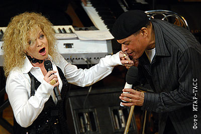 Певица Лариса Долина и музыкант Эл Джерро во время концерта "Весенний Jazz"