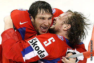 В матче наши хоккеисты, уступая в счете 1:3 и 2:4, вырвали победу у сборной Канады благодаря двум голам Ковальчука в конце третьего периода и в овертайме - 5:4