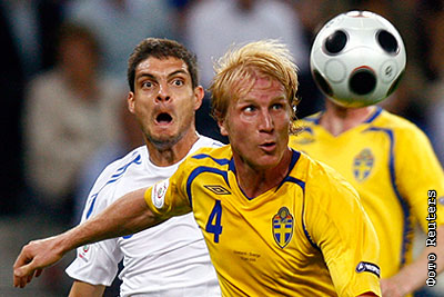 Греки, действующие чемпионы Европы по футболу, уступили шведам со счетом 2:0. Таким образом, лидерство в группе D поделили сборные Швеции и Испании