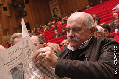 Режиссер Никита Михалков на VII съезде Союза кинематографистов в Доме кино