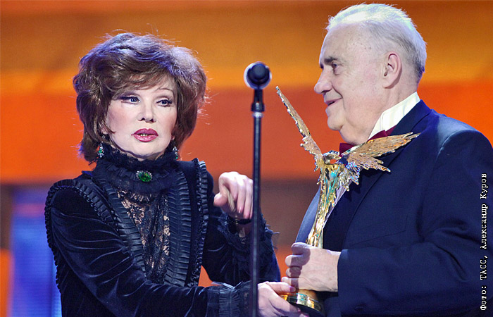 Людмила Гурченко и Эльдар Рязанов, лауреат премии в номинации "Честь и достоинство", во время XX церемонии вручения кинематографической премии "Ника". Март 2007 года.