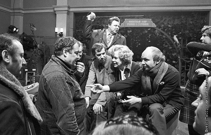 Эльдар Рязанов во время съемок сатирической комедии "Гараж" на киностудии "Мосфильм". Февраль 1979 года.