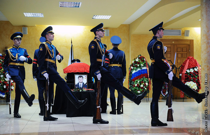 В Липецке простились с Героем России Олегом Пешковым, пилотом сбитого в Сирии бомбардировщика Су-24. Церемония прощания началась с отпевания в кафедральном Христорождественском соборе. После тело пилота было доставлено в областной Центр культуры и народного творчества, где проститься с летчиком смогли все желающие. Проводить Пешкова в последний путь пришли сотни людей - сослуживцы по Липецкому авиацентру, представители властей и общественности, а также жители Липецка, Тамбова и других городов Черноземья. После панихиды пилота похоронили на аллее героев городского кладбища. Олег Пешков погиб в результате обстрела с земли 24 ноября, после того как его самолет Су-24 был сбит турецким истребителем F-16. Указом президента РФ Владимира Путина за героизм, мужество и отвагу, проявленные при исполнении воинского долга, подполковнику Пешкову Олегу присвоено звание Героя Российской Федерации (посмертно).