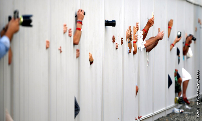Зрители фотографируют гонку Гран-при "Формулы-1" в Абу-Даби
