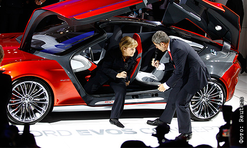 На 64-м Международном автосалоне во Франкфурте канцлер ФРГ Ангела Меркель посетила стенд компании Ford.