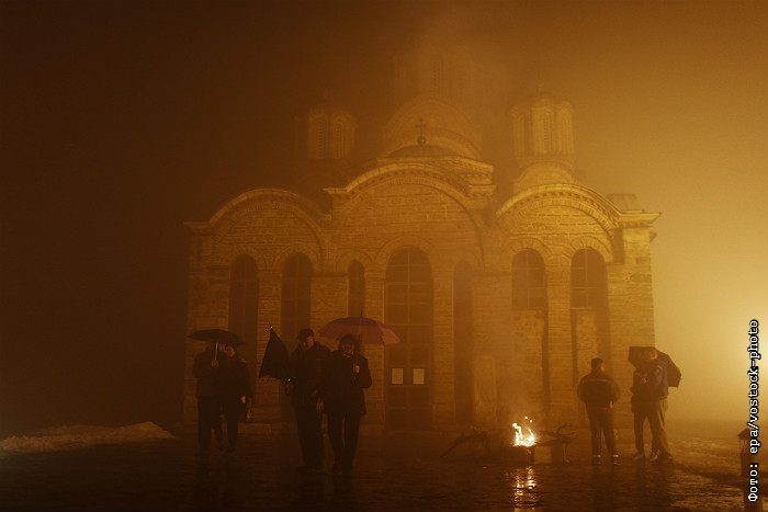 Косовские сербы собираются на рождественское богослужение у средневекового монастыря Грачаница, которых находится в сербском анклаве неподалеку от Приштины