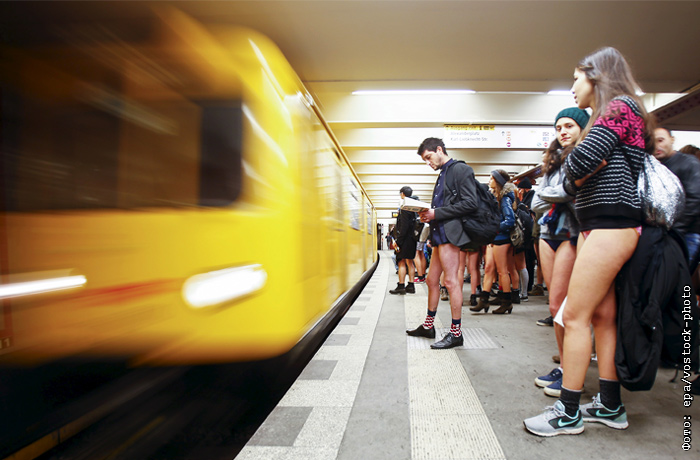 В Берлине прошел ежегодный январский флешмоб "В метро без штанов"