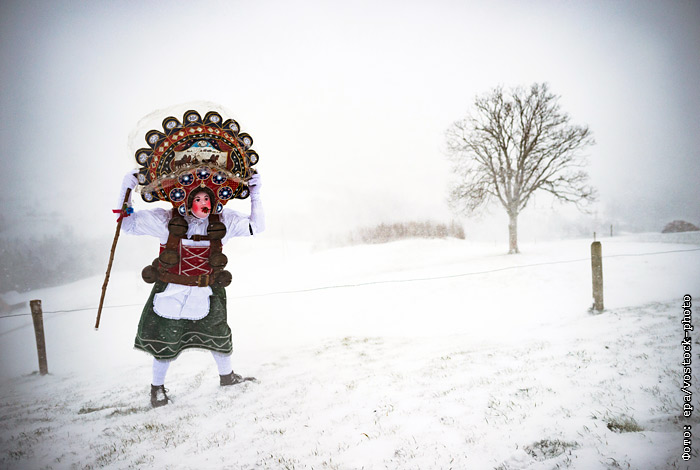 Непогода в швейцарской коммуне Вальдштатт не помешала традиционному новогоднему персонажу, которого здесь называют Silvesterchlaus, поздравить жителей с наступающим Новым годом по юлианскому календарю. Местные Санта-Клаусы ходят по домам с песнями и танцами, поздравляют всех с зимними праздниками, а в ответ получают угощения от хозяев.