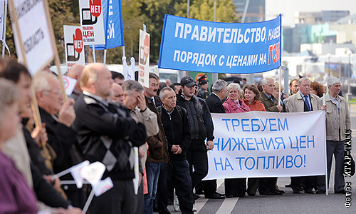 Участники акции протеста против роста цен на топливо на набережной Шевченко.