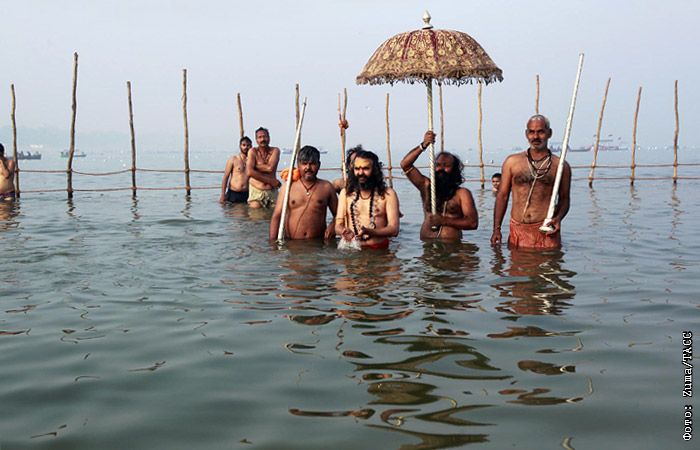 В индийском городе Аллахабад отметили индуистский фестиваль урожая Макара-санкранти, совершив ритуал омовения в водах Ганга