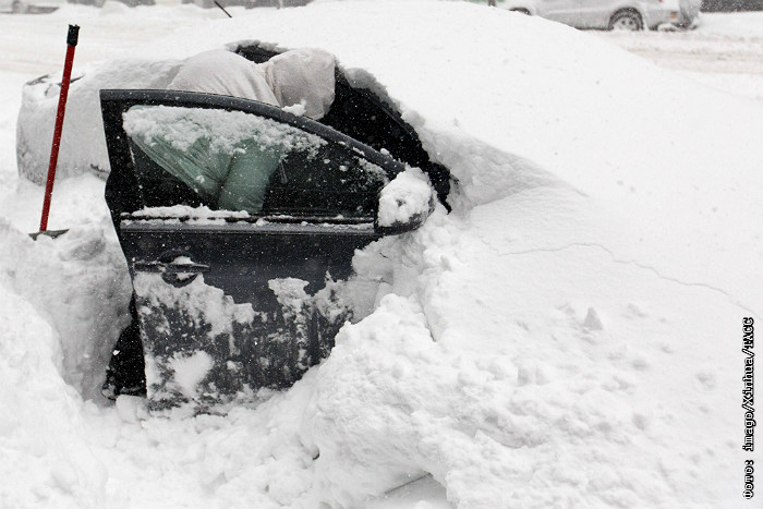 Житель Нью-Йорка откапывает свою машину