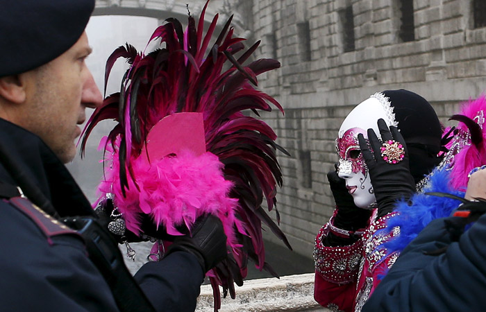 В Венеции проходит традиционный карнавал, который ежегодно привлекает в город сотни тысяч туристов со всего мира. Мероприятие стартовало 23 января и продлится 18 дней. В этом году в городе приняты повышенные меры безопасности. Сотрудники полиции просят ряженых снимать маски при входе на центральную площадь Святого Марка для проверок.