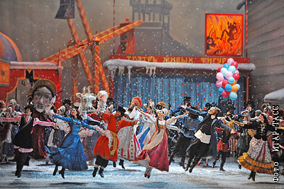 Сцена из генеральной репетиции балета И.Стравинского "Петрушка" в постановке Сергея Вихарева в Большом театре