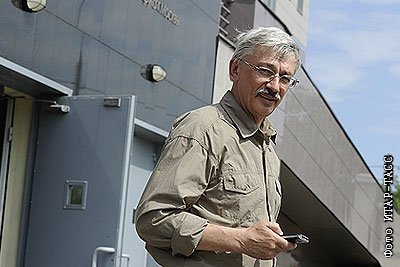 Глава правозащитного центра "Мемориал" Олег Орлов, которому были предъявлены обвинения по уголовному делу о клевете в отношении президента Чечни Рамзана Кадырова, у здания Следственного управления при УВД ЦАО Москвы