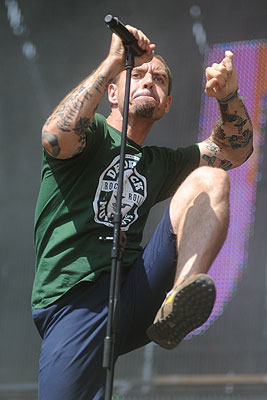 Лидер группы "Ляпис Трубецкой" Сергей Михалок во время выступления на рок-фестивале "Нашествие"