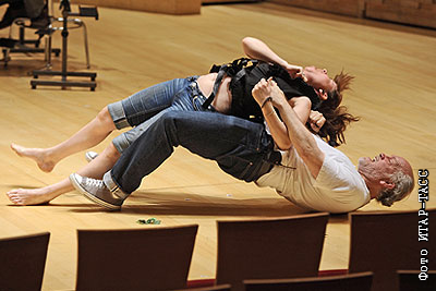 Американский актер Джон Малкович и оперная певица Жанна Домбровская на репетиции спектакля "Адская комедия" по пьесе Михаэля Штурмингера в концертном зале Мариинского театра. Премьера состоится в рамках фестиваля "Звезды белых ночей"