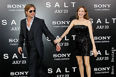 Брэд Питт и Анджелина Джоли на премьере фильма "Солт" в Голливуде