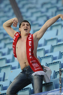 Болельщик команды "Спартак-Нальчик" во время матча чемпионата России по футболу: ЦСКА (Москва) – "Спартак-Нальчик" (Нальчик) – 1:2