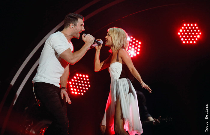 Исполнители Сэм Хант и Кэрри Андервуд во время выступления на церемонии "Грэмми"
