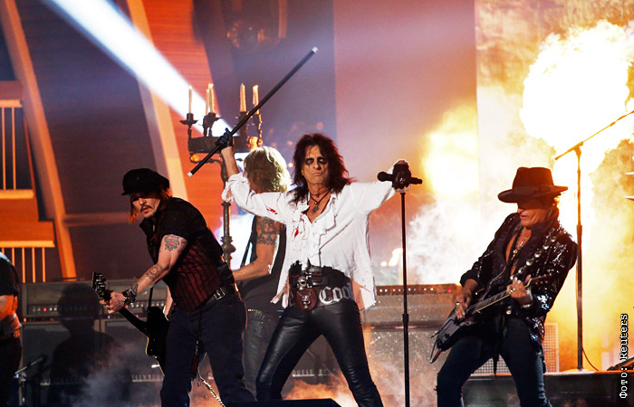 Джонни Депп, Дафф Маккаган, Элис Купер и Джо Перри выступают в составе группы The Hollywood Vampires с композицией, посвященной лидеру группы Motorhead Лемми Килмистеру, умершему в конце декабря