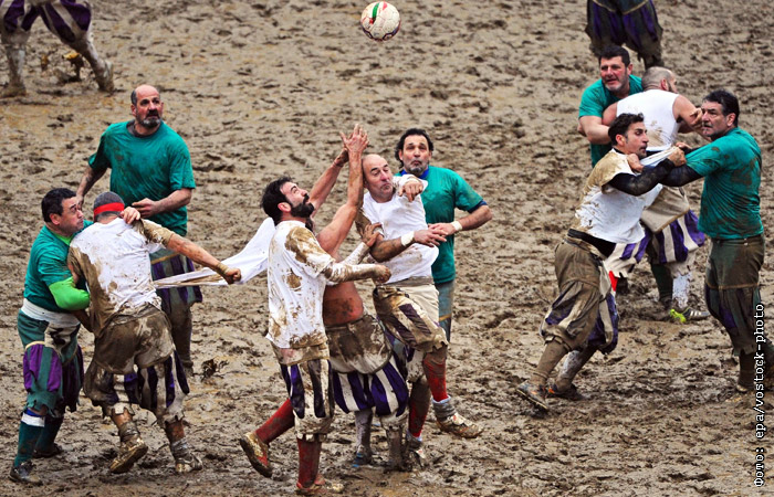 Во Флоренции на площади Санта-Кроче прошла итальянская игра флорентийский кальчо, являющаяся отдаленным предком современного футбола и регби, но включающая в себя элементы бокса, борьбы и смешанных единоборств. Вместо стандартной футбольной формы игроки используют костюмы ХVI века в память об историческом событии 17 февраля 1530 года, когда в осажденной Флорентийской Республике был организован матч.