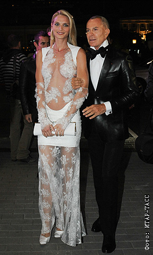 Актриса и модель Сара Маршалл и французский дизайнер Жан-Клод Житруа на церемонии вручения премии журнала GQ "Человек года-2011" в РАМТе.