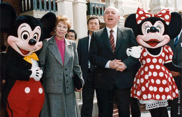 Михаил Горбачев с супругой Раисой Горбачевой посещают Диснейленд в Токио в апреле 1992 года