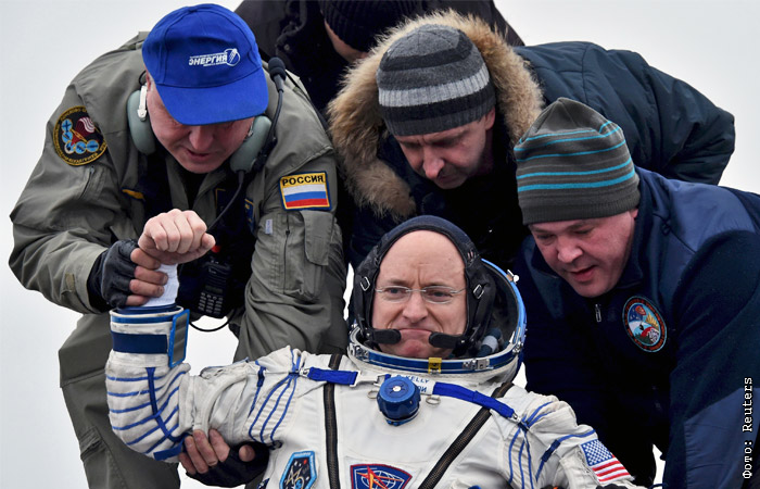 Космический корабль "Союз ТМА-18М" с международным экипажем в составе космонавтов Сергея Волкова и Михаила Корниенко, а также астронавта НАСА Скотта Келли успешно приземлился на территории Казахстана
