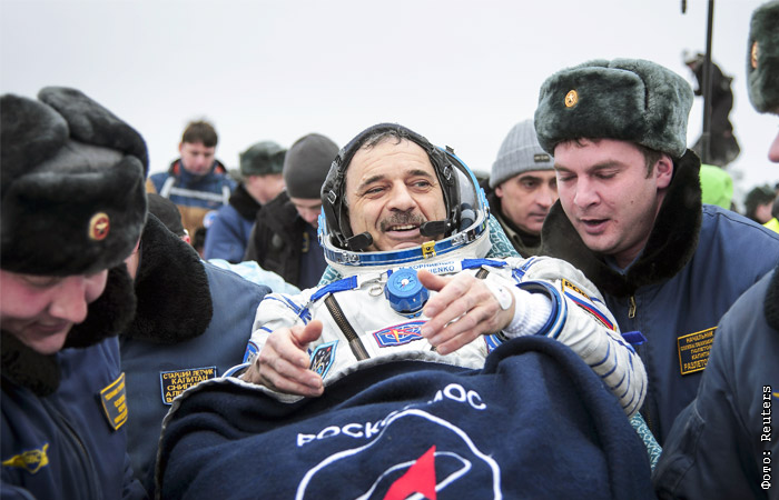 Космический корабль "Союз ТМА-18М" с международным экипажем в составе космонавтов Сергея Волкова и Михаила Корниенко, а также астронавта НАСА Скотта Келли успешно приземлился на территории Казахстана