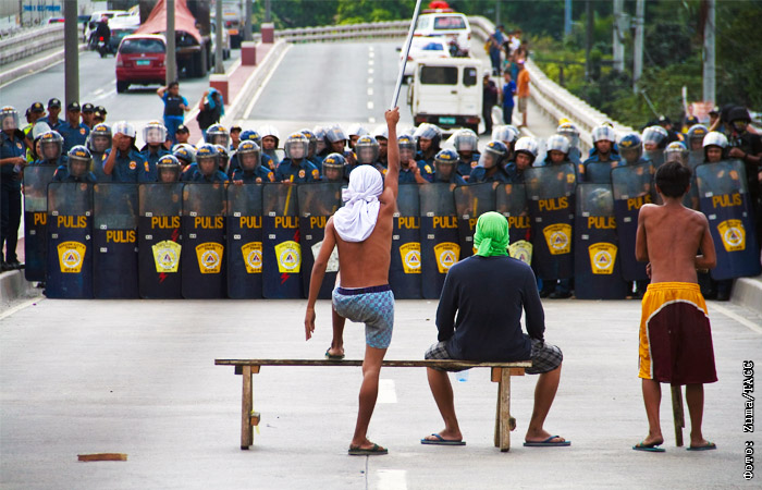 Жители незаконного поселения в Кесон-Сити, бывшей столице и самом населенном городе Филиппин, оказали сопротивление силам правопорядка, выступая против сноса своих жилищ