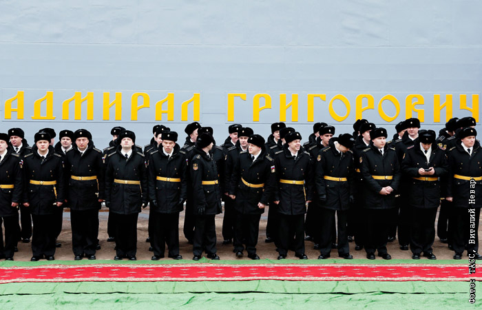 На Прибалтийском судостроительном заводе "Янтарь" состоялась торжественная церемония поднятия Андреевского флага на фрегате "Адмирал Григорович" ВМФ РФ , который станет первым кораблем проекта 11356, оснащенным корабельным ракетным комплексом "Калибр-НК" с высокоточной крылатой ракетой 3М-54ТЭ, многоканальным корабельным зенитным ракетным комплексом "Штиль-1"и зенитным ракетно-артиллерийским комплексом "Палаш".