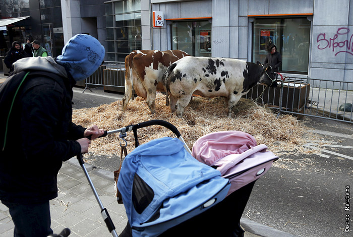 В Брюсселе фермеры устроили очередную акцию протеста возле здания Совета ЕС, где прошла встреча министров сельского хозяйства стран Евросоюза