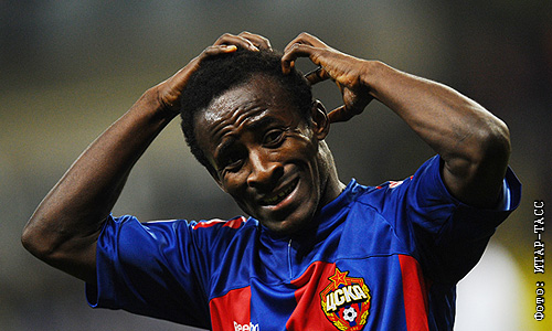 Игрок ЦСКА Сейду Думбия в матче Лиги чемпионов УЕФА: ЦСКА (Москва) - "Интер" (Милан).