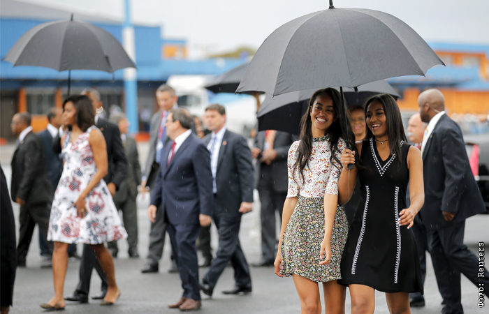 Обама прилетел в аэропорт Хосе Марти с семьей - двумя дочерьми Малией и Сашей (на фото), супругой Мишель и тещей Марианн Шилдс Робинсон